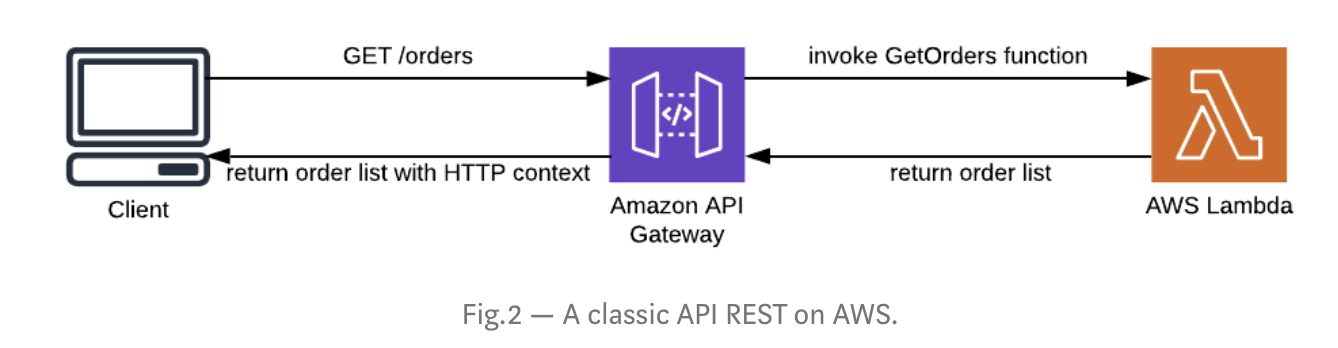 - the endpoint’s backend : Lambda (containerized microservice, load balancer, HTTP endpont...)