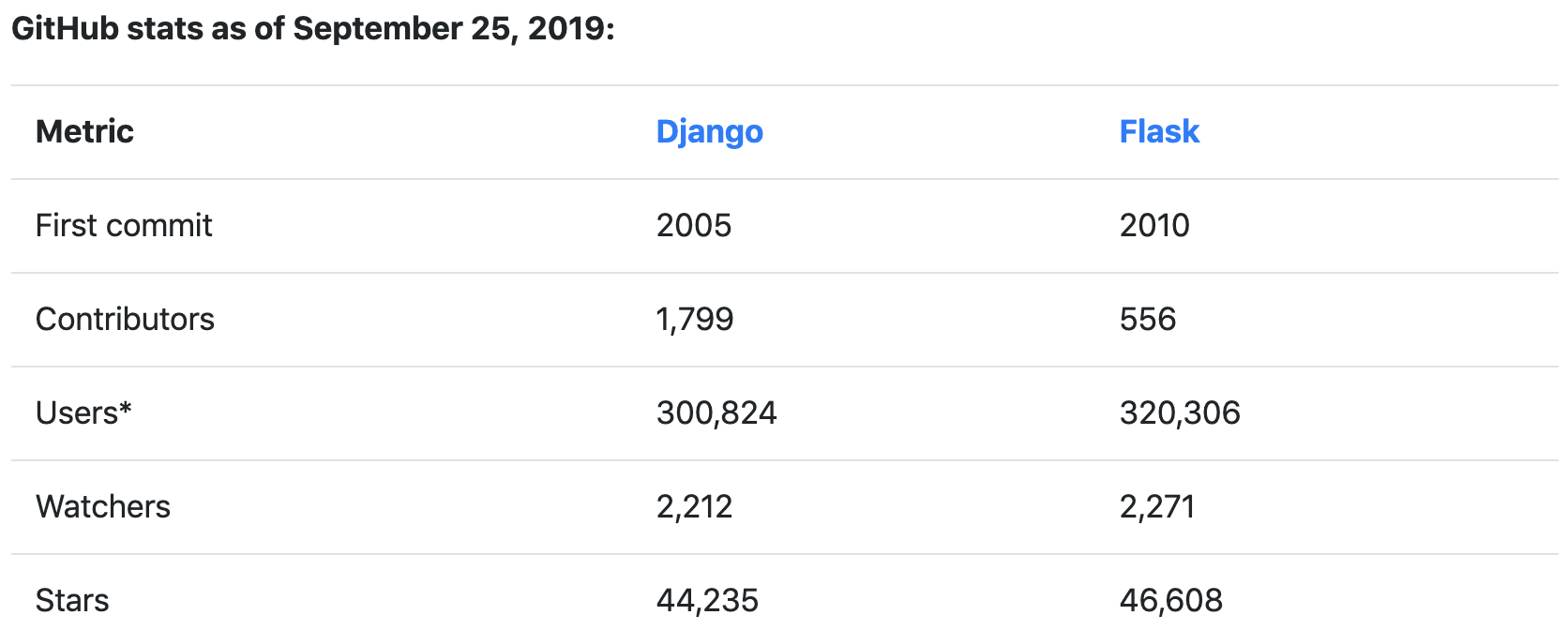 1. Flask와 Django 모두 활발한 Open Source Communities를 가지고 있다.