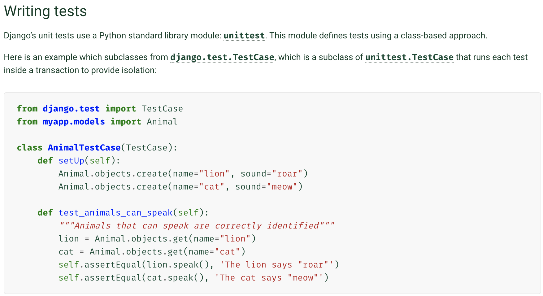 Unit Test의 경우, 둘다 Python's unittest framework 을 활용하고, response 를 validation 하기 위해 request를 보내는 test client를 제공한다.