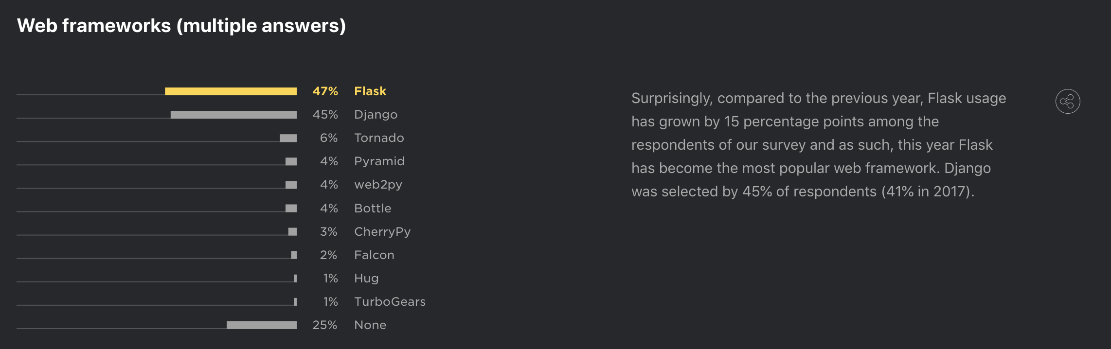 3. Flask를 사용하는 projects가 더 많으며