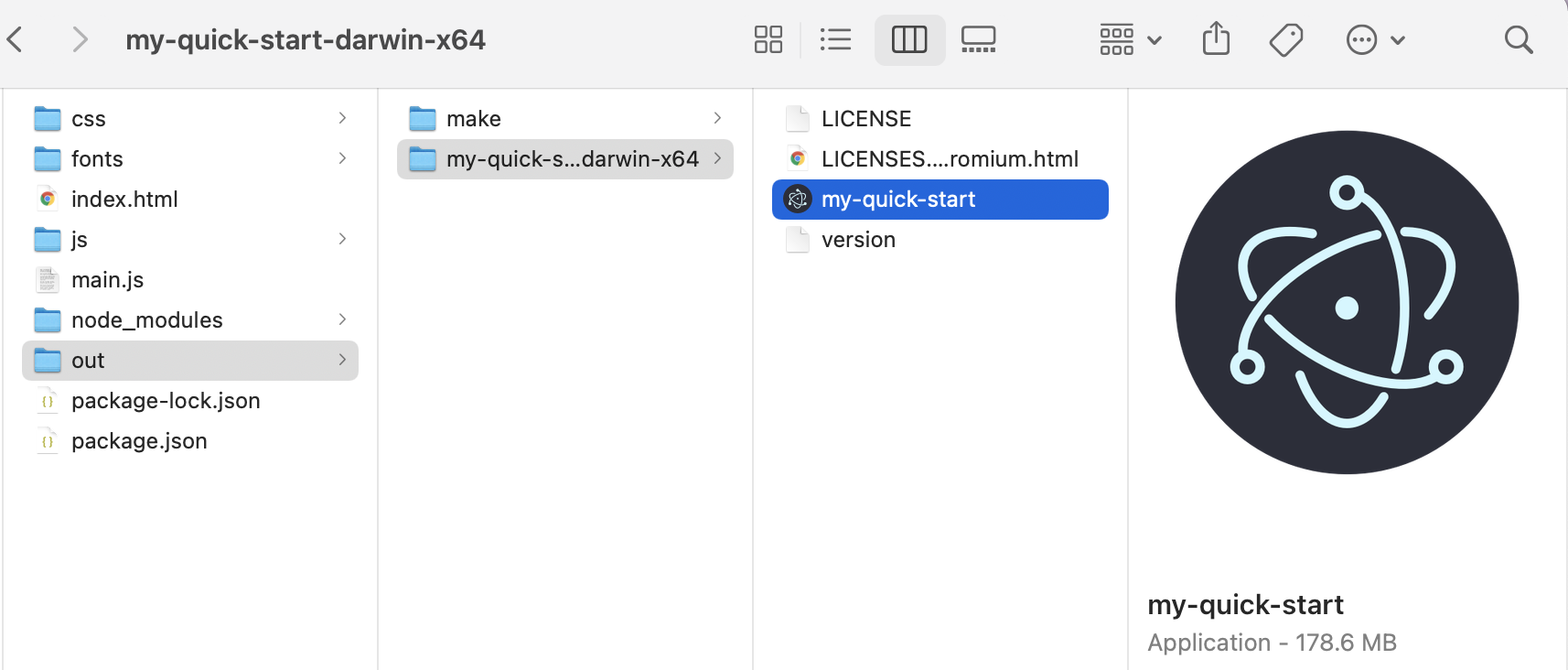 - 빌드하면 아래 경로에 앱 생성: 역시 Chromium + 각종 node.js module 을 함께 패키징하다보니 Build 한 앱 용량이 178M나 된다.