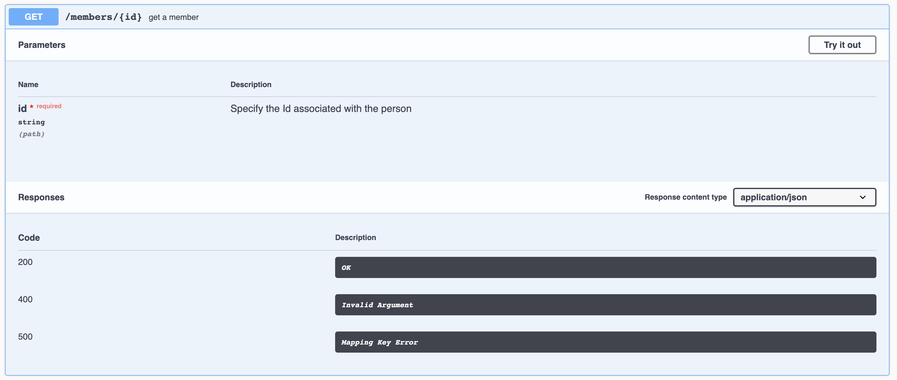 @app.doc(responses={200: 'OK', 400: 'Invalid Argument', 500: 'Mapping Key Error'},