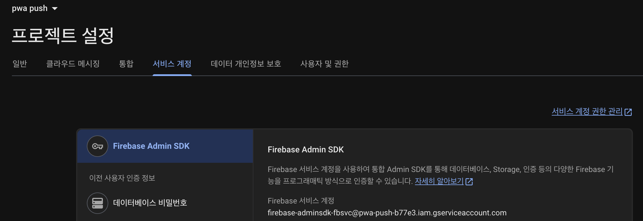 Firebase 콘솔 > 프로젝트 설정 > 서비스 계정에서 새 비공개키 생성