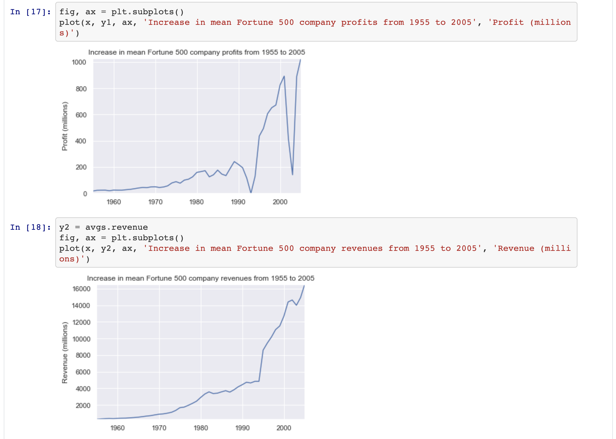 사실 예제 자체는 data를 처리하는 pandas를 이용해서 원하는 데이터만 남기고, matplotlib 으로 차트를 그리는 것으로 해당 module에 대해 별도의 공부가 필요하다. 여기서 목적은 이렇게 code cell에 작성하여 실행하면 output이 같은 notebook에 나와서 깔끔하게 정리할 수 있고 또한 githubs gist share 할 수 있다는 것을 체험하는 것이다.
