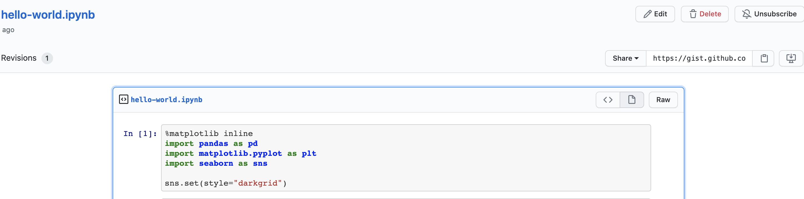 github에 code를 올리는 것은 이미 많이 익숙한데 github이 gist 라는 service를 하는 줄은 몰랐다. gist에 올리면 바로 jupyter notebook 내용을 rendering 해서 보여준다.