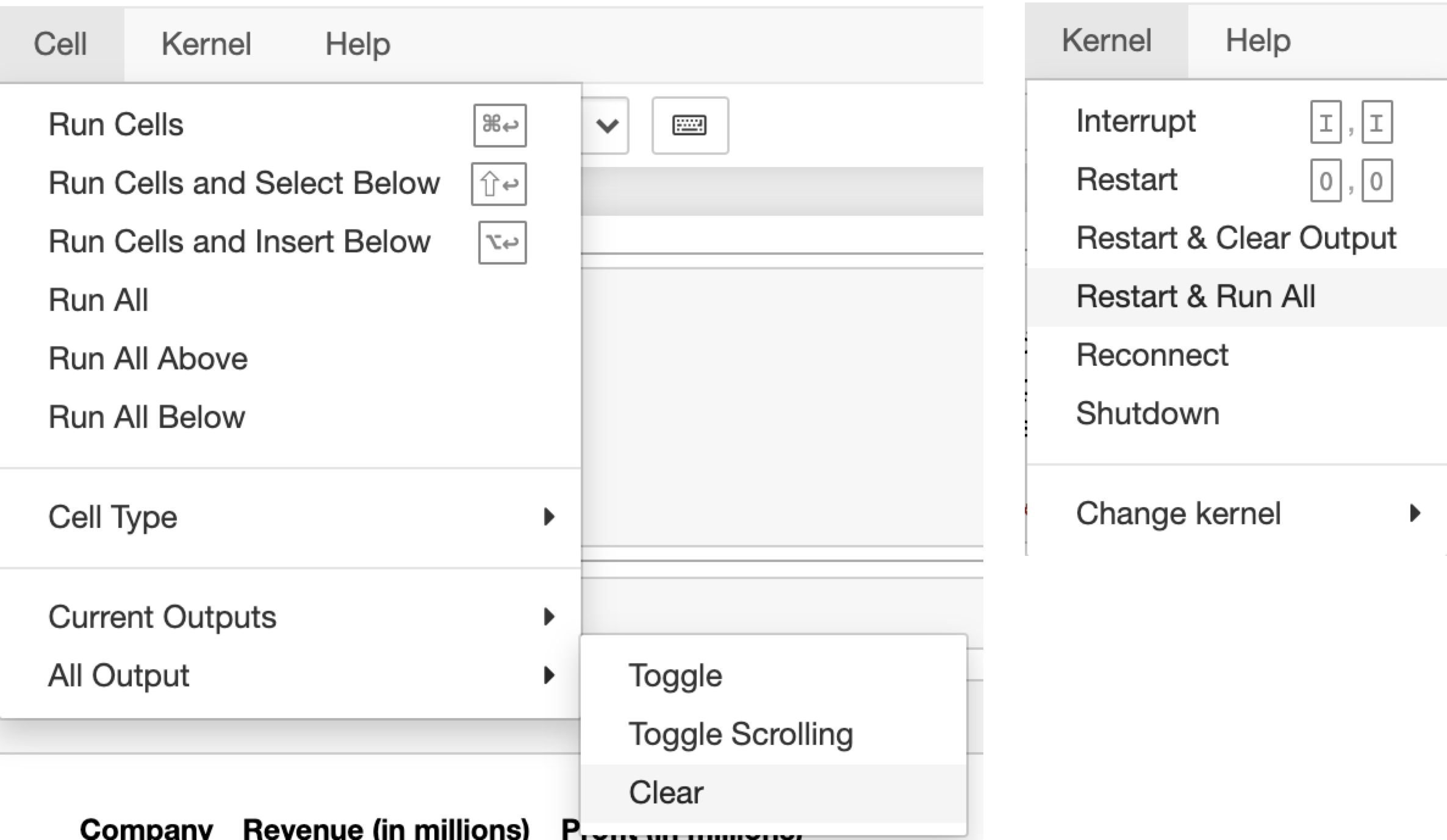 깔끔하게 notebook 을 한번 정리한다. Clear, Restart & Run All