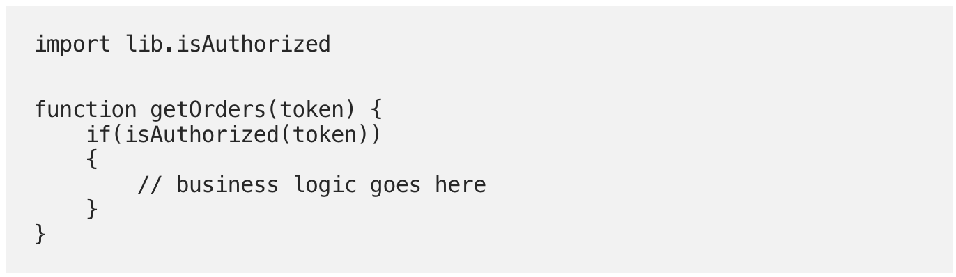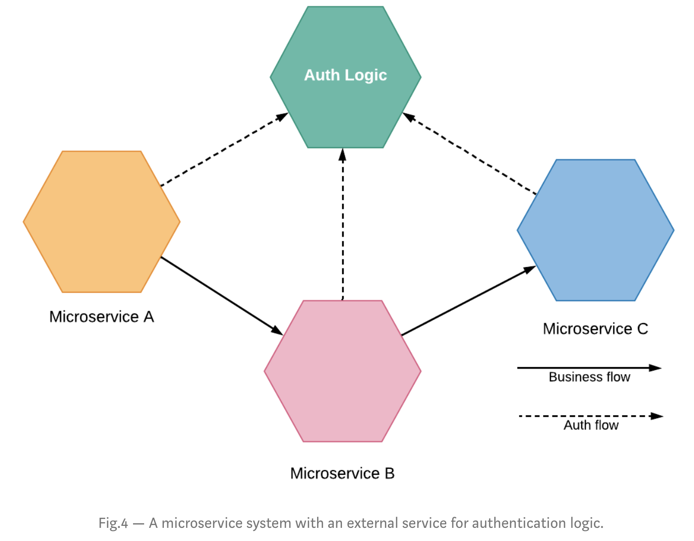 하지만 요즘은 microservices 시대. 아래와같이 Auth Logic이 Business Logic과 같이 있다면 비효율적이다. (Auth Logic 버그 하나 생기면 모두 배포해야..)