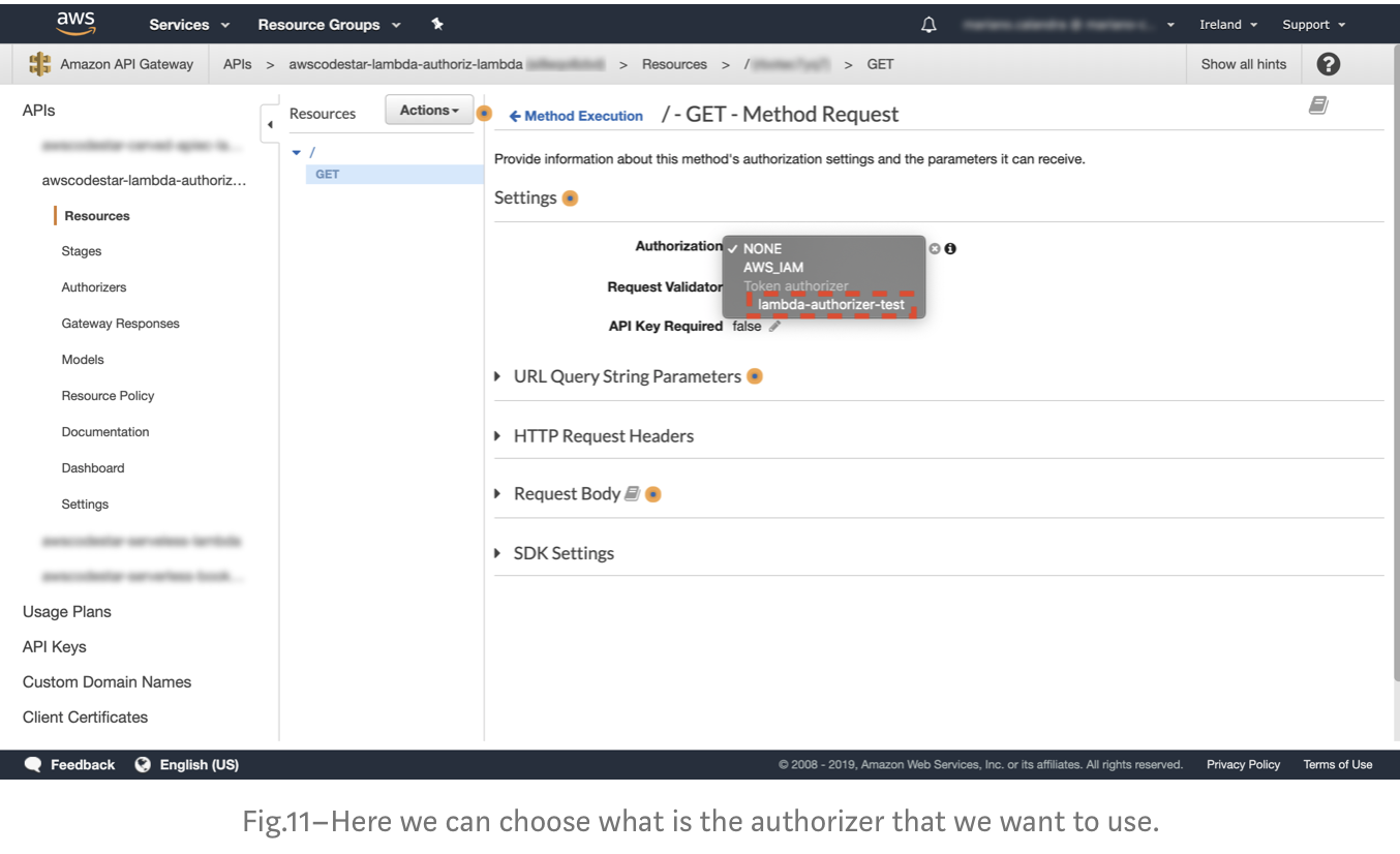 이때 Method Request 를 click해서 Authorization 에서 위에서 만든 Lambda Authorizer를 선택하여 설정한다.