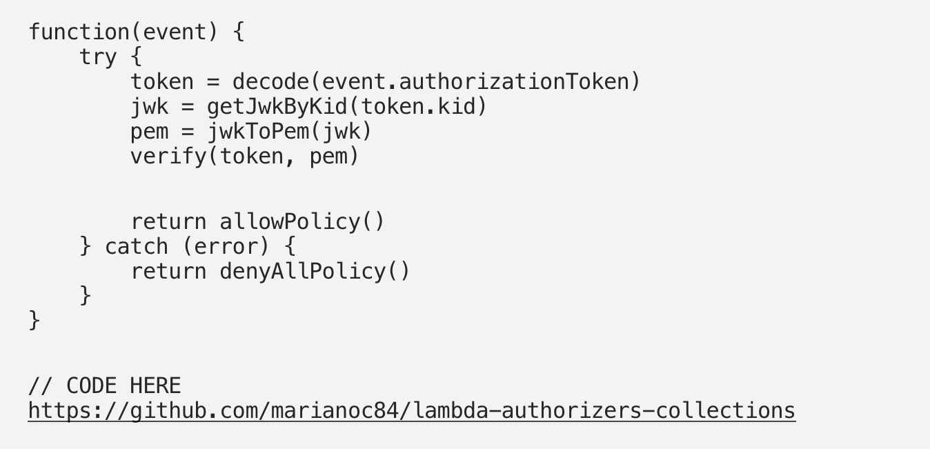 한번 경험하고 싶으면 https://github.com/marianoc84/lambda-authorizers-collections 코드를 참조