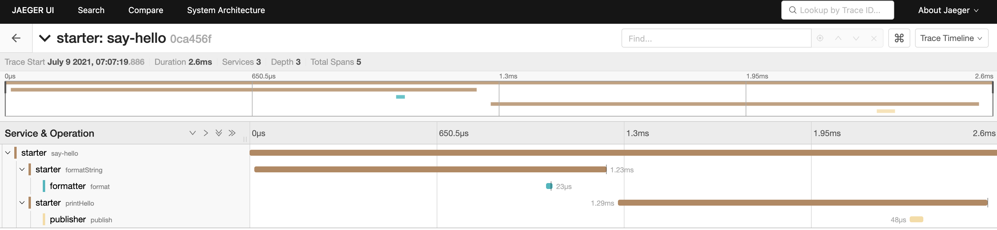span := tracer.StartSpan("say-hello") // root span 시작 ✅