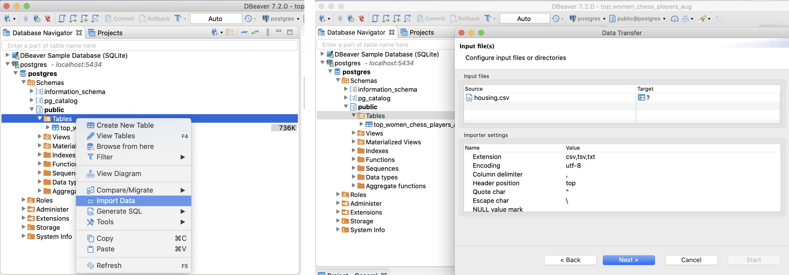 test 할 table 만들기 - 일일히 database만들기 귀챦으니... 위에서 다운 받은 csv 파일을 import하기